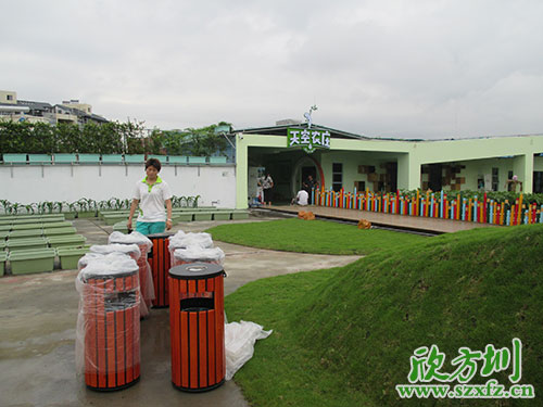 深圳天空農(nóng)莊是中國首家以有機(jī)農(nóng)業(yè)為主題的兒童體驗(yàn)樂園,以“給孩子一個(gè)綠色的童年”為核心,以有機(jī)農(nóng)業(yè)為依托,以體驗(yàn)式教育理論為基礎(chǔ),專為3-15歲兒童打造的多功能主題樂園!天空農(nóng)莊采購部為利于環(huán)保,提升環(huán)境形象,創(chuàng)建和諧的自然環(huán)境,特意聯(lián)系我司欣方圳訂購了一批鋼木垃圾桶。