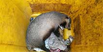 9月11日上午7點左右,南京鼓樓區建寧路200號附近一居民小區,保潔員周某報警,稱她在小區垃圾箱內發現一只疑似已懷孕的不知名野生動物,看上去很兇,現在被困桶內...