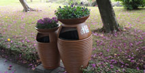 游樂園果皮箱采購批發款式有:1.動物型果皮箱,采用玻璃鋼材質制作,外觀生動形象,2.環保果皮箱,箱體輕便,簡單實用,可以上下移動. 游樂園果皮箱要做到...