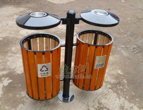 鋼木垃圾桶是指選用優質進口山樟木、防腐木或塑木,經防腐烘干處理后,桶身框架采用冷軋鋼板加工,表面經酸洗磷化噴塑處理組裝用來盛放垃圾的容器。一般用在學校廣場公園等公共場所,起到清理環境垃圾,美化周邊環境等作用。經過除蟲、防蟻、防腐、烘干處理后加工成型,鋼板部分表面再經雙層戶外級優質靜電噴粉處理,具有戶外耐候持久,防腐防蛀不變形等優點。