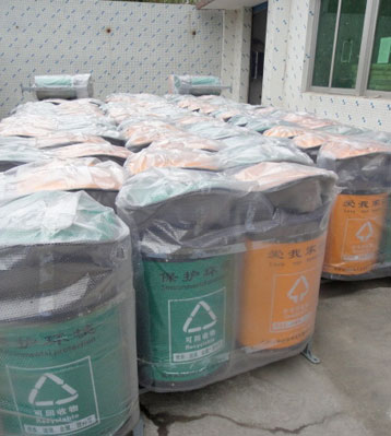 • 產品材質:新型環保垃圾桶采用高品質復合板,以廢棄的含有紙、塑料、鋁復合包裝及其邊角料等成分為原材料,通過細碎、加熱、壓制等工序制成,具有防水、防腐、耐高溫、無偷盜價值等優點,是新一代政府提倡再生利用資源環保型產品,廢棄物回收再利用,減輕廢棄物帶給我們的環境壓力;材料可制作多種顏色和款式的垃圾桶,為我們的生活添彩;