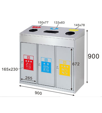 欣方圳三分類不銹鋼垃圾桶