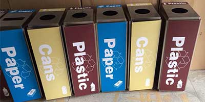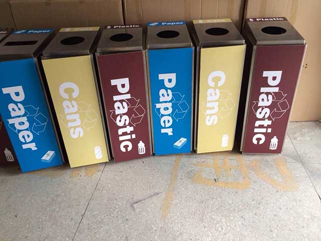 不銹鋼四分類環(huán)保回收箱使用優(yōu)質(zhì)不銹鋼制作。耐空氣、蒸汽、水等弱腐蝕介質(zhì)和酸、堿、鹽等化學(xué)浸蝕性介質(zhì)腐蝕,所以不銹鋼垃圾桶耐用性高。