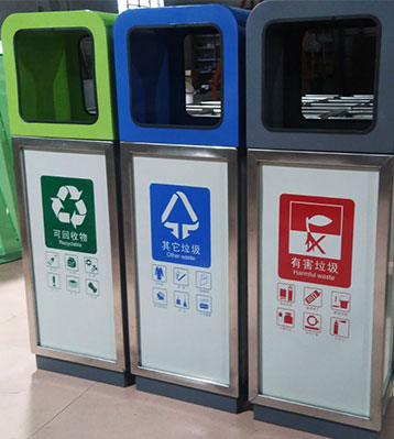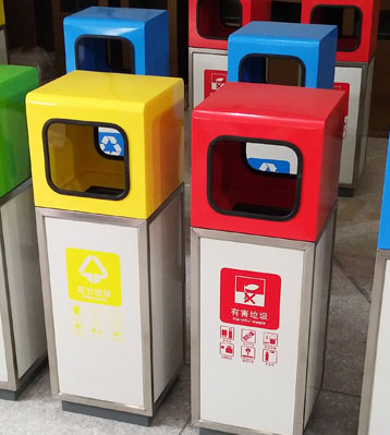 • 使用范圍:三分類鐵板噴塑垃圾桶表面光滑、亮麗,是電梯口、寫字樓、學校、物業、賓館、酒店、機場、汽車站等擺放的首選。