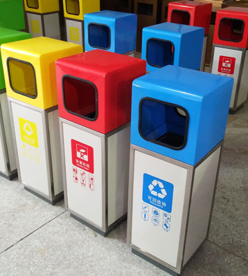 • 產品材質:三分類鐵板噴塑垃圾桶采用優質冷軋鋼經除油-除銹-表調-磷化處理后,表面采用汽車靜電粉末噴漆工藝,噴塑粉主要有丙烯酸粉末、聚酯粉末等。雙層防銹,漆面色澤耐久;