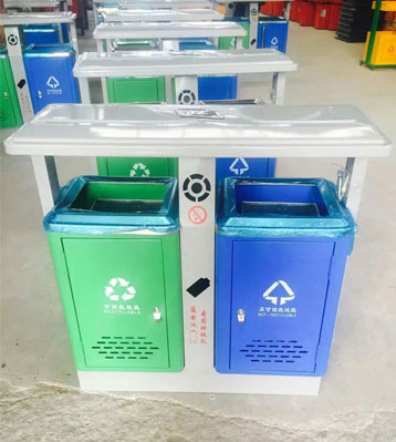欣方圳戶外鋼制環保分類垃圾桶工廠批量生產圖
