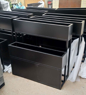 金屬烤漆花箱可根據客戶需求,選擇不銹鋼或鍍鋅板等不同材質制作,表面可做烤漆、噴塑、電鍍等工藝處理,經酸洗磷化防銹處理長期戶外擺放美觀耐用!