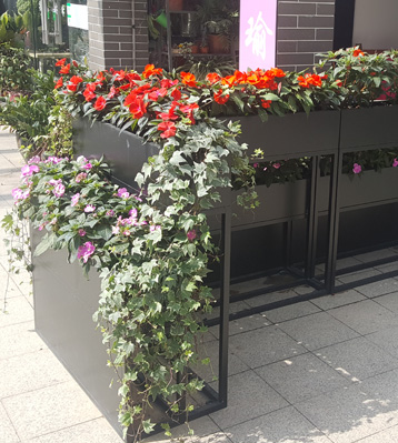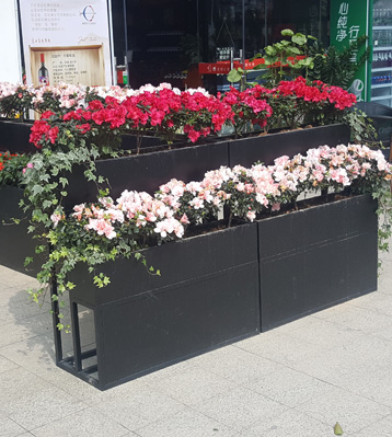 商業街戶外雙層組合金屬烤漆花箱實景圖
