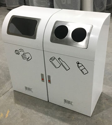 • 產(chǎn)品材質(zhì):欣方圳室內(nèi)三分類垃圾箱果皮箱采用優(yōu)質(zhì)冷軋鋼材料經(jīng)剪鈑下料、折彎、沖壓、焊接、打磨、等工藝:表面經(jīng)過除油、噴砂防銹處理后,再進行酸洗磷化處理;表面清理干燥后整體進行靜電噴涂或烤漆處理,靜電噴涂是經(jīng)過流水線高溫固化爐固化后再出爐冷卻,加工后的塑粉附著力強,不易剝落;