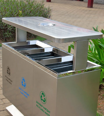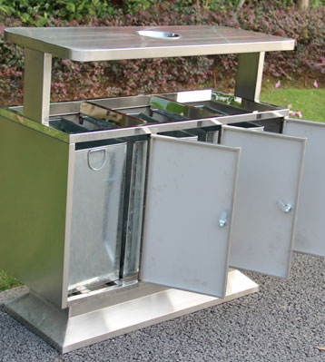 • 使用范圍:不銹鋼戶外三分類果皮箱表面光滑、亮麗,是電梯口、寫字樓、學校、物業、賓館、酒店、機場、汽車站等擺放的首選。